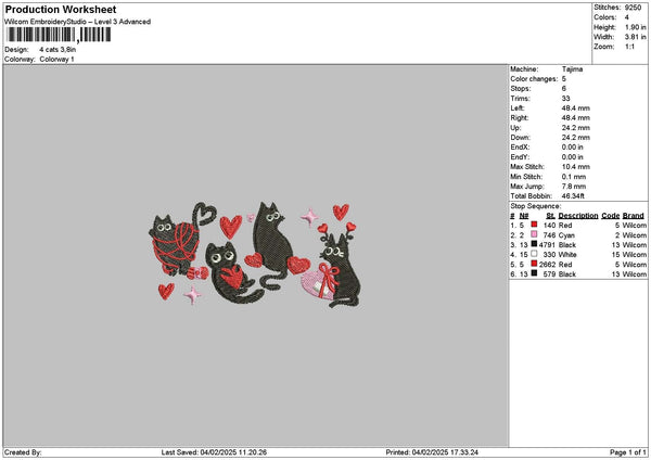 4 Blackcats Embroidery File 6 sizes