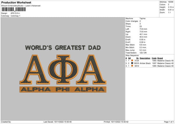 Apa Embroidery File 6 sizes