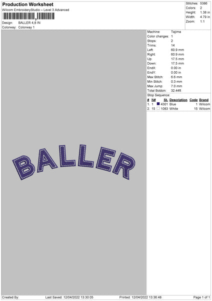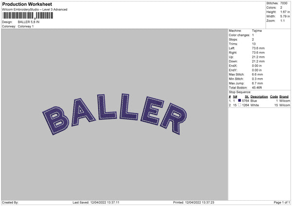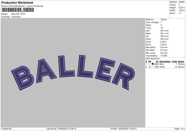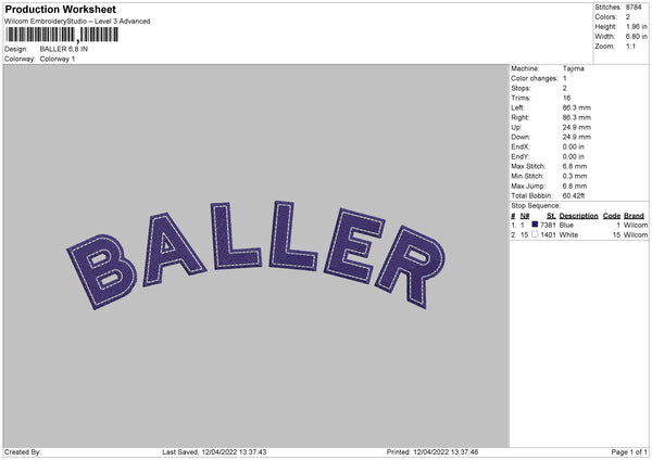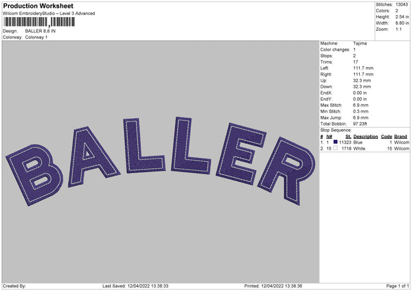 Baller Embroidery File 4 size