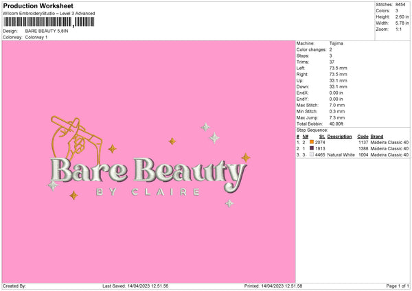 Bare Beauty Embroidery File 6 sizes