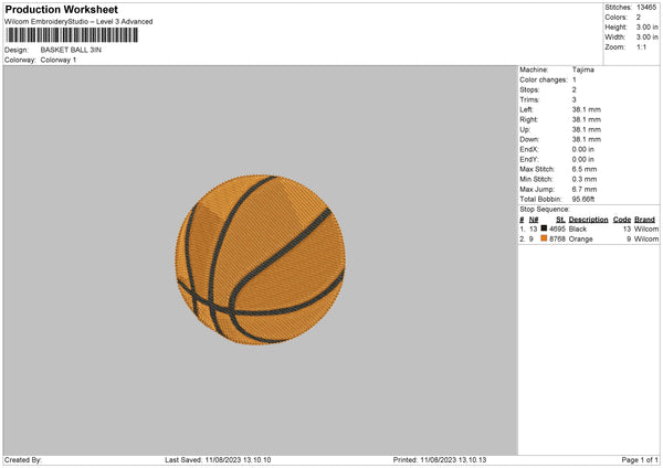 Basket Ball Small Embroidery File 6 sizes