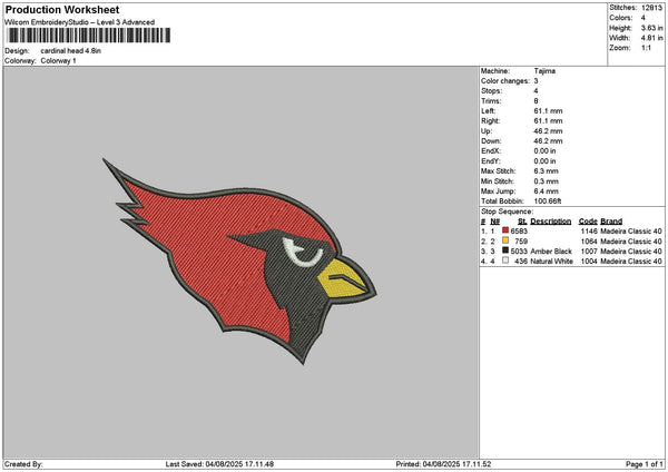 Bird Head 0408 Embroidery File 6 sizes