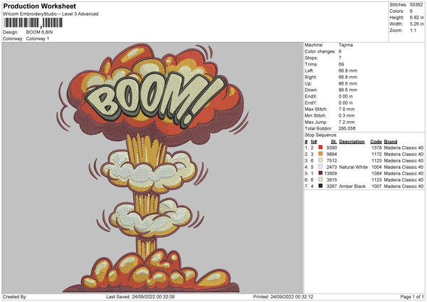Boom Embroidery File 5 sizes