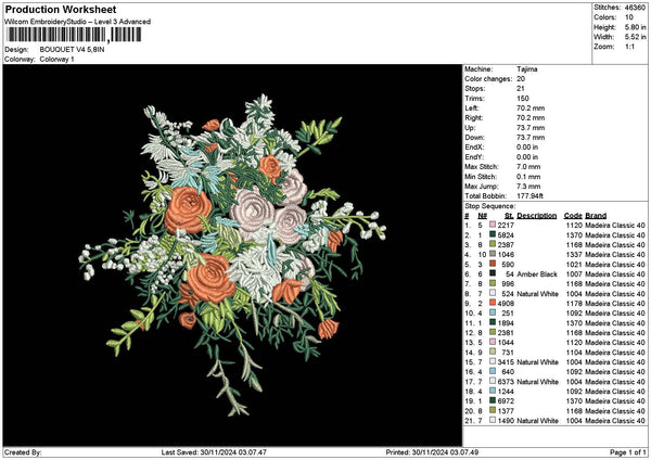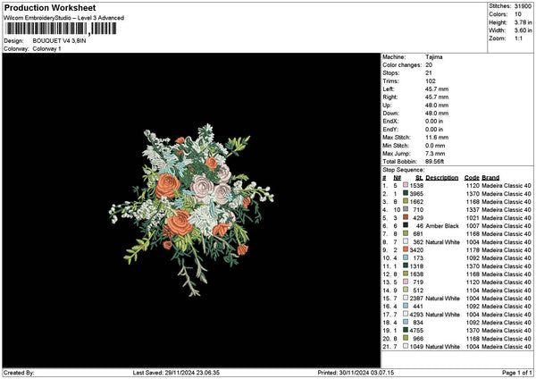 Bouquete 3011b Embroidery File 6 sizes