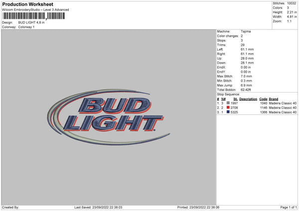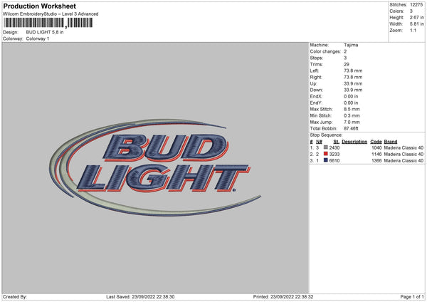 Bud Light Embroidery File 5 sizes