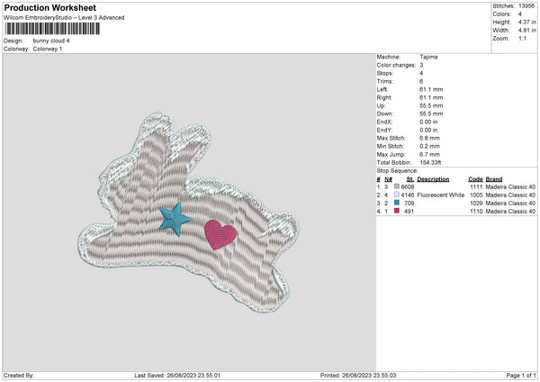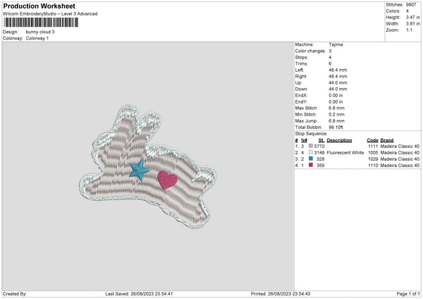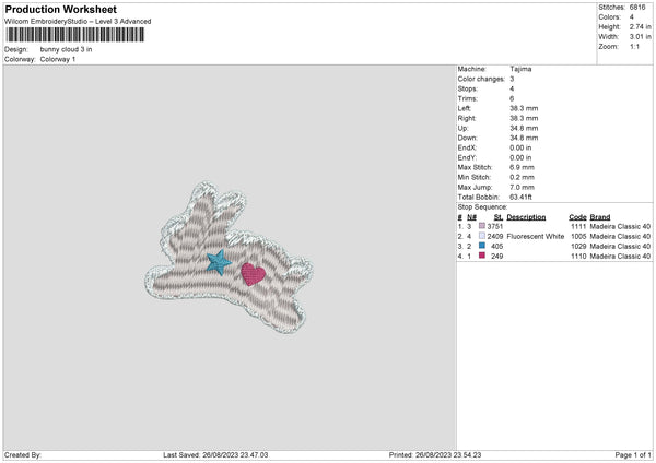 Bunny Cloud Embroidery File 6 sizes