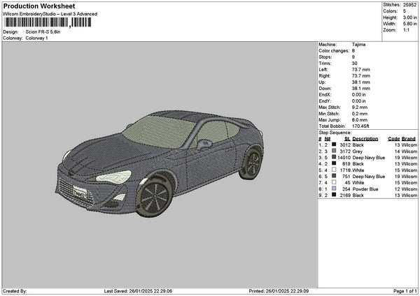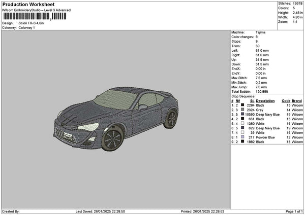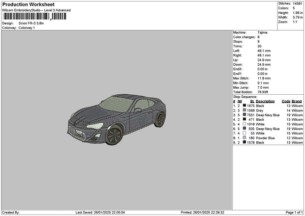 Car 2601a Embroidery File 6 sizes