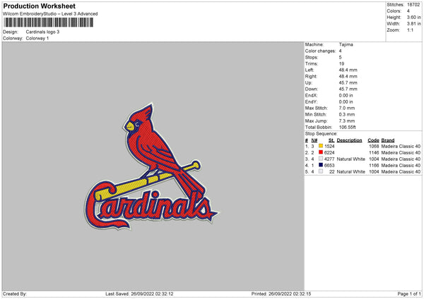 Cardinals Logo Embroidery File 5 sizes