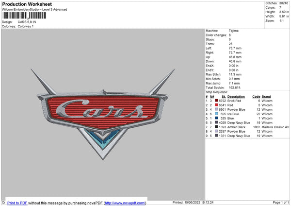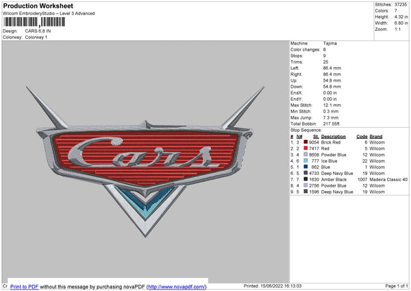 Cars Embroidery File 4 size