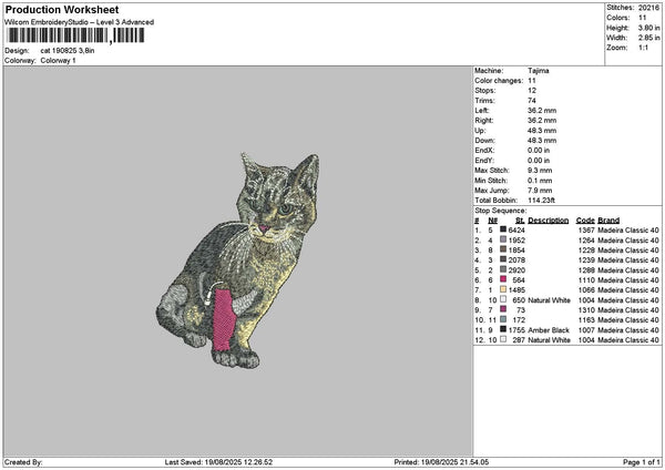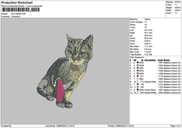 Cat 1908 Embroidery File 6 sizes
