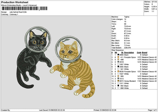 Cats Helmet Embroidery File 6 sizes