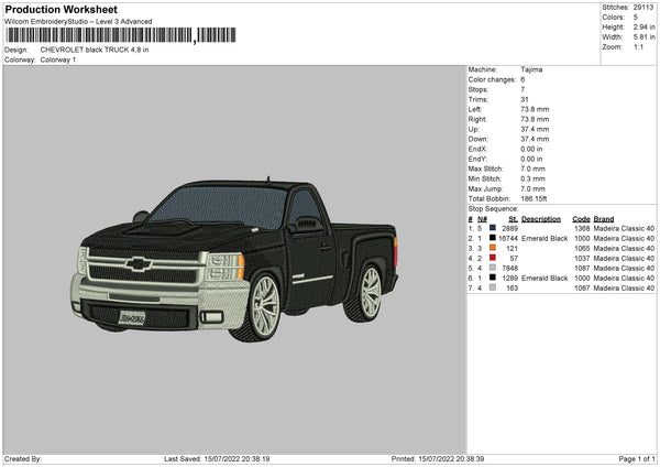 Chevrolet Truck Rev Embroidery File 4 sizes