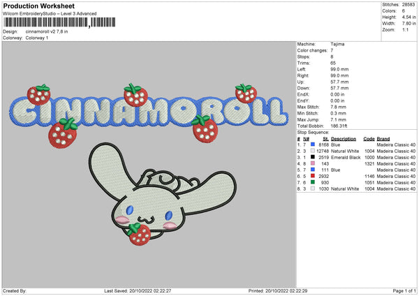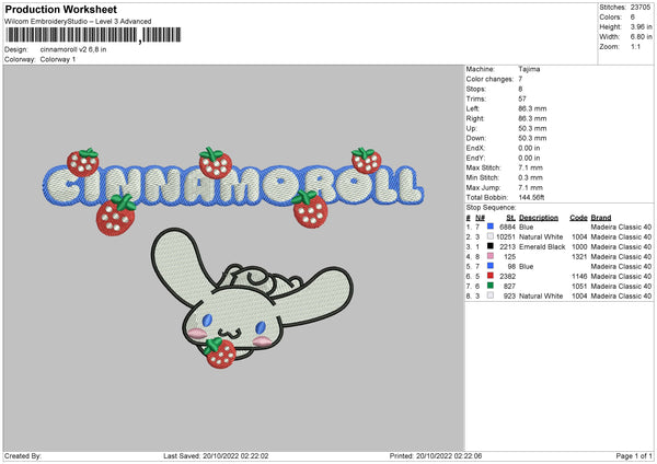 Cinnamorollv2 Embroidery File 6 sizes