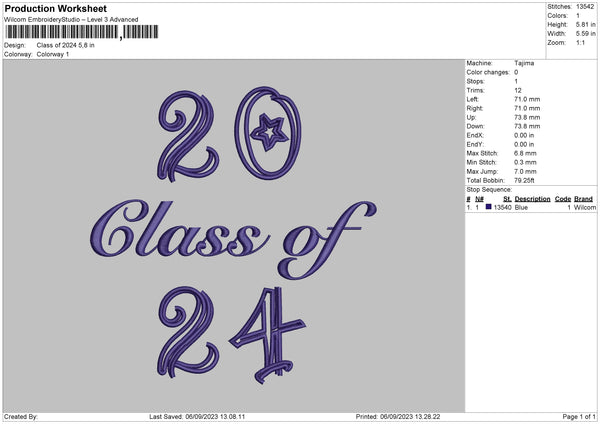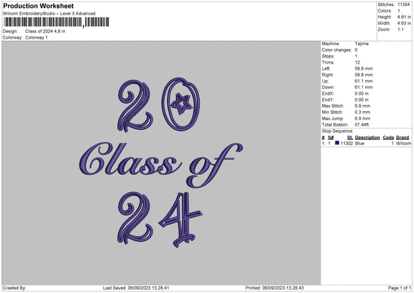 Class Of 2024 3 Parts Embroidery File