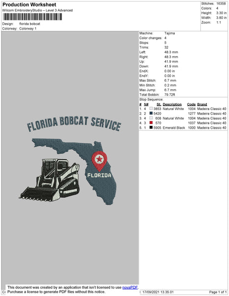 Florida Bobcat Embroidery File 4 size