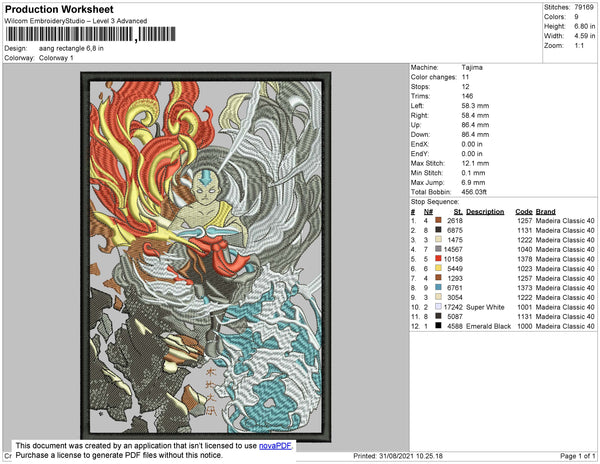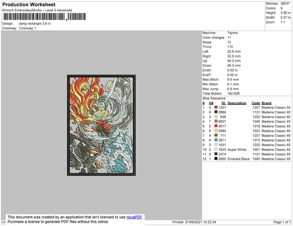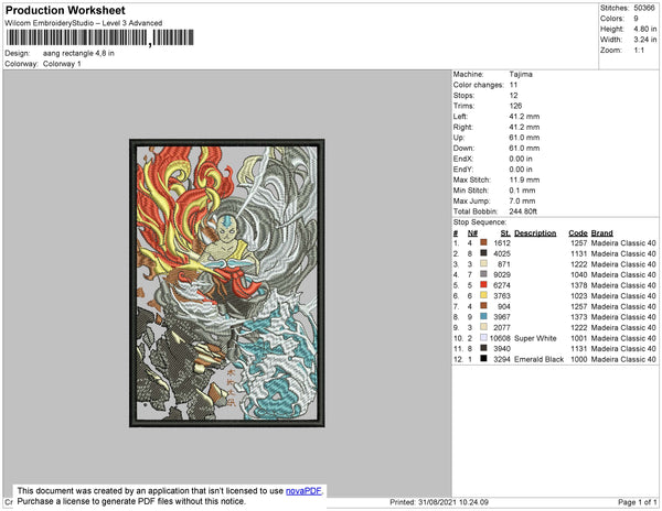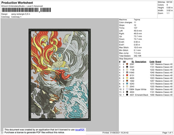 Aang Rectangle Embroidery File 4 size