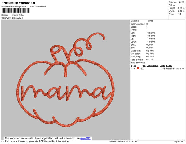 Mama Pumpkin Embroidery File 4 size