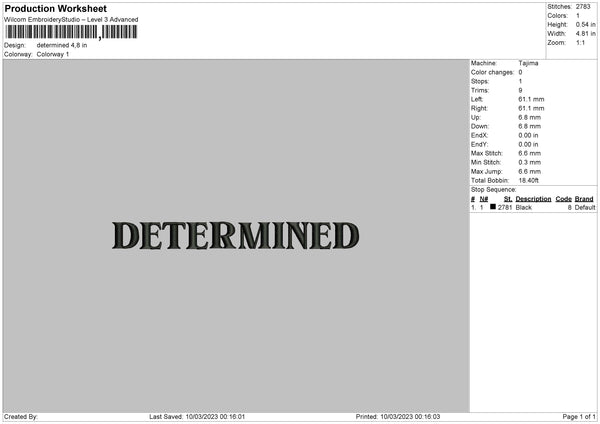 Determined Embroidery File 6 sizes