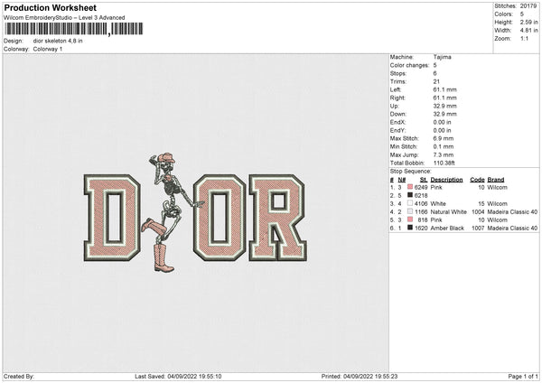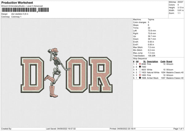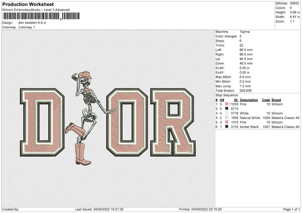 Dior Skeleton Embroidery File 4 size