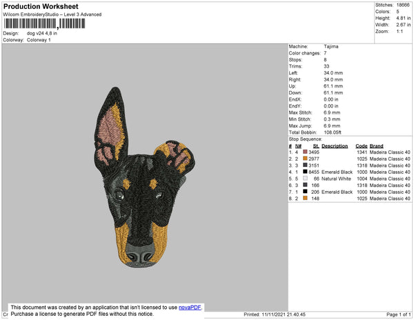 Dog Head V24 Embroidery File 4 size