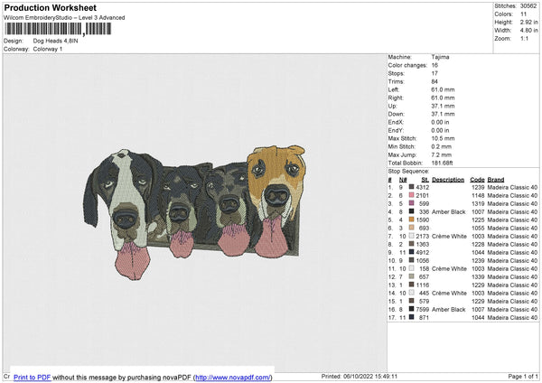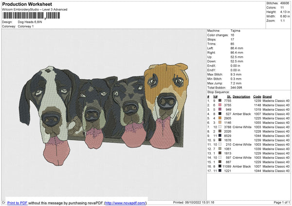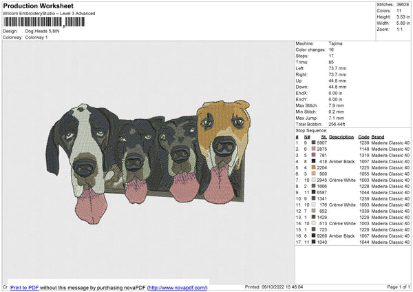 Dog Heads Embroidery File 4 size