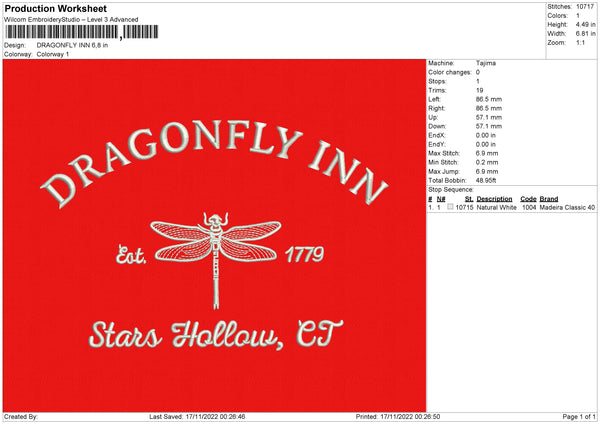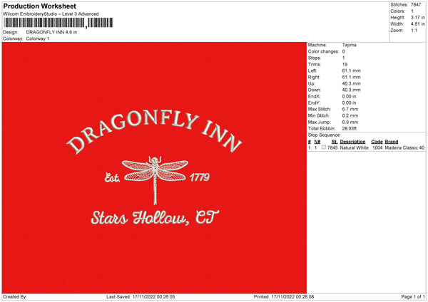 Dragonfly Inn Embroidery File 6 sizes
