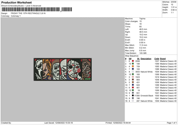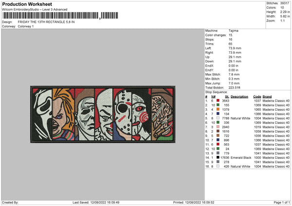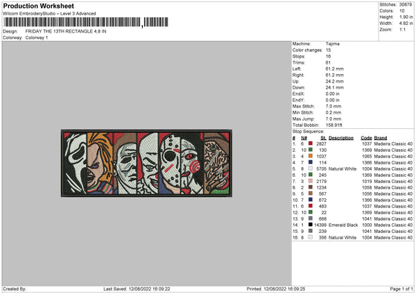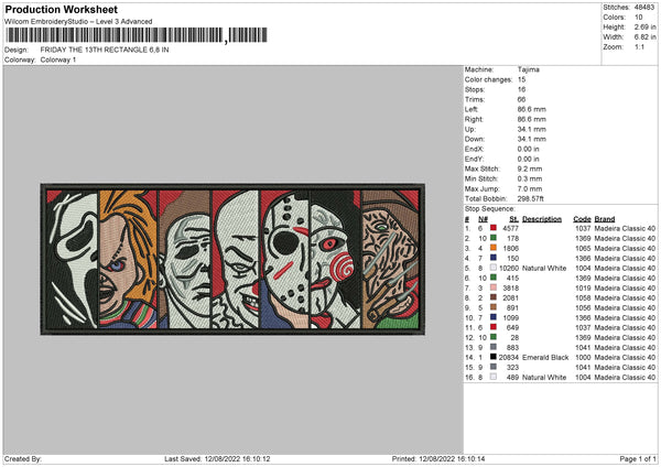 Friday The 13Th Rectangle Embroidery File 4 sizes