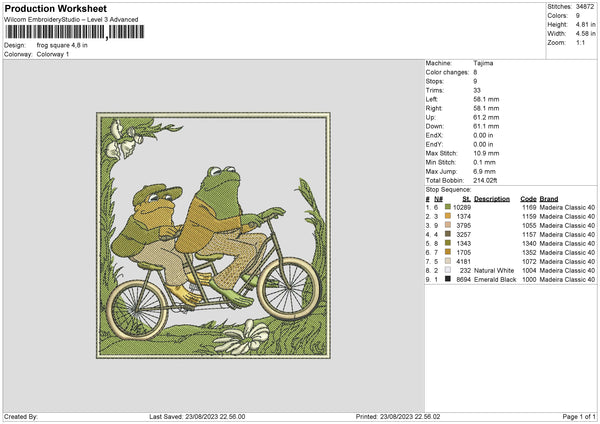 Frog Square Embroidery File 6 sizes