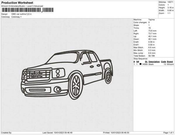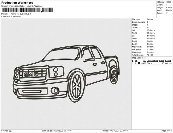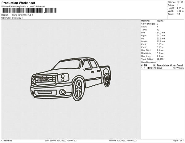 GMC car outline Embroidery File 6 sizes