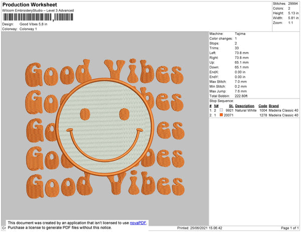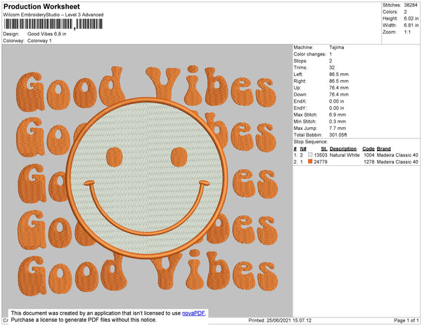 Good Vibes Smile Embroidery File 4 size
