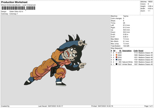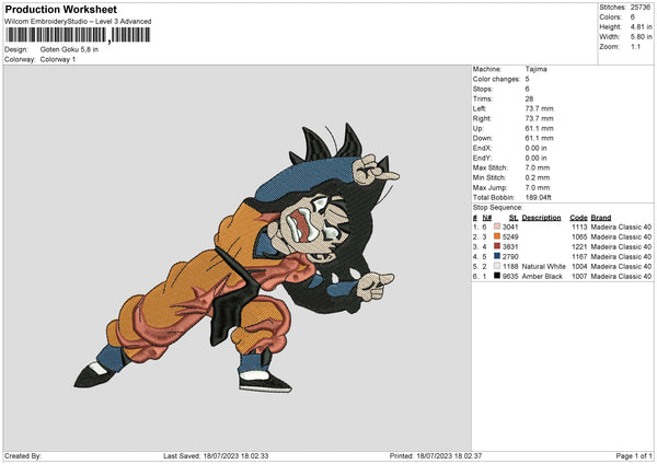 Goten Goku Embroidery File 6 sizes