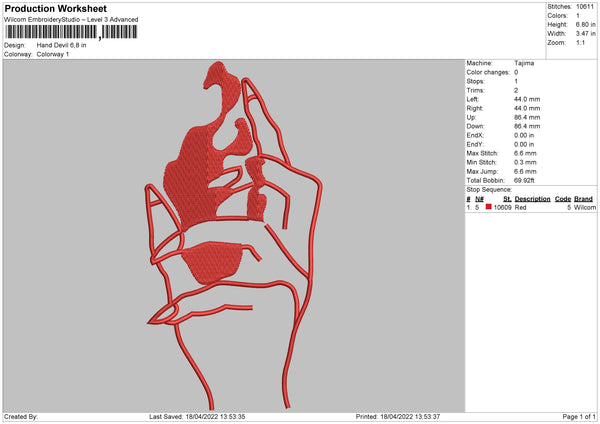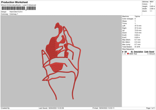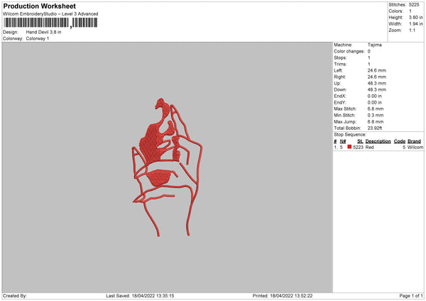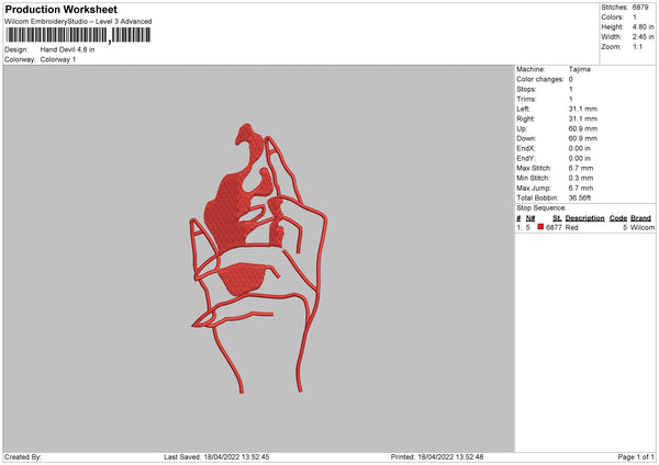 Hand Devil Embroidery File 4 size