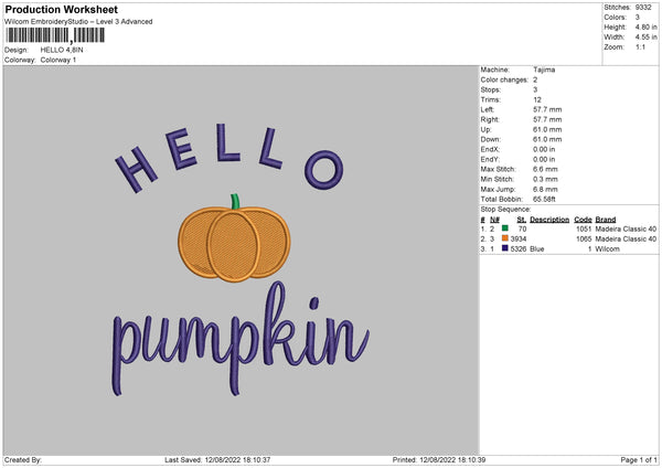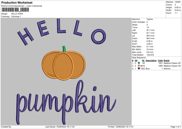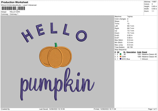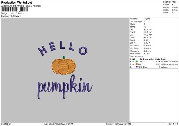 Hello Pumpkin V3 Embroidery File 4 sizes