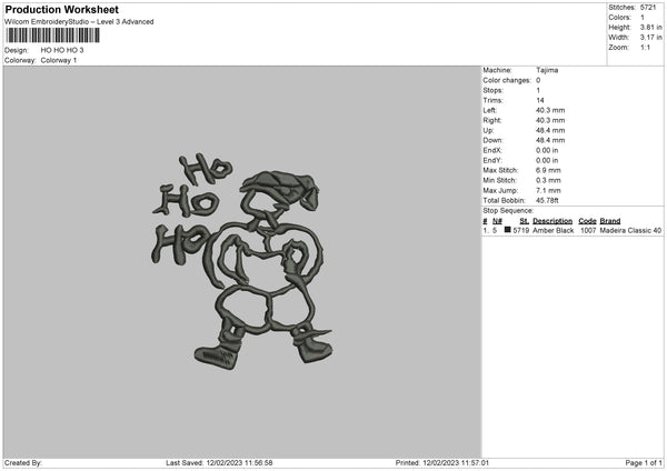 Ho Ho Ho 02 Embroidery File 6 sizes