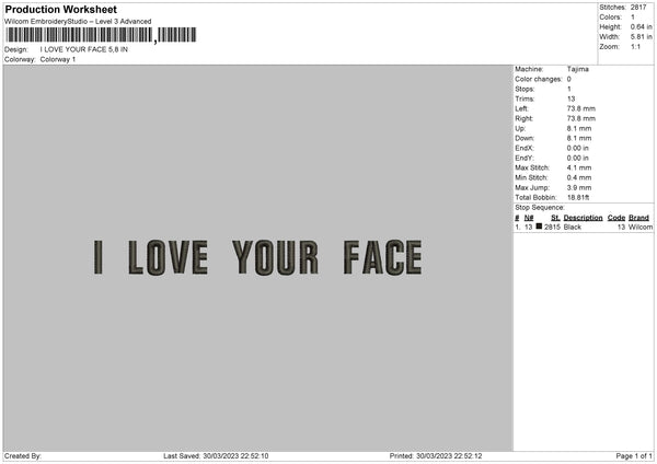 Ily Face Embroidery File 6 sizes