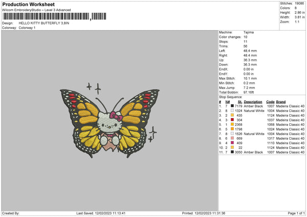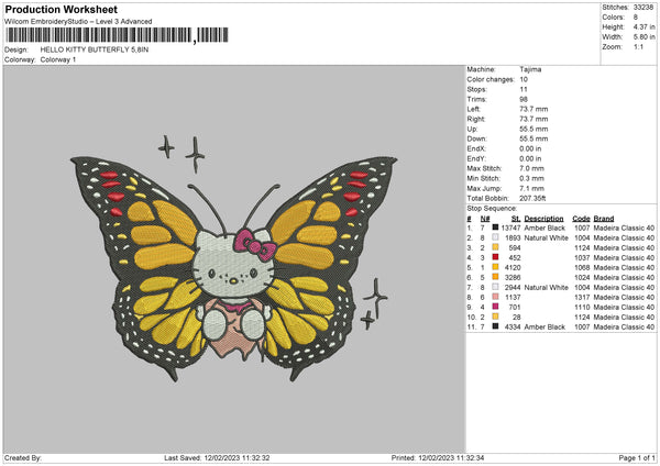 Kitty Butterfly Embroidery File 6 sizes