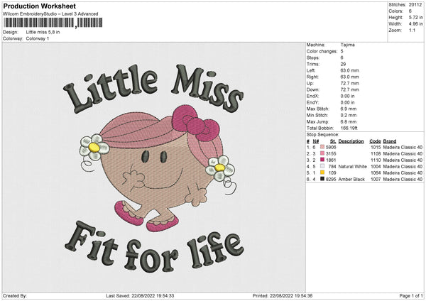 Little Miss Embroidery File 4 sizes