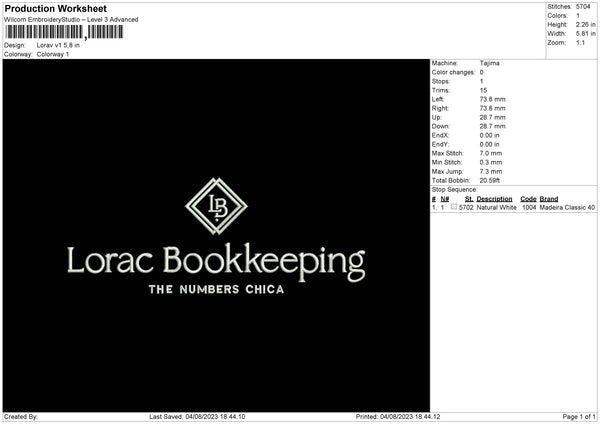 Lorac V1 Embroidery File 6 sizes