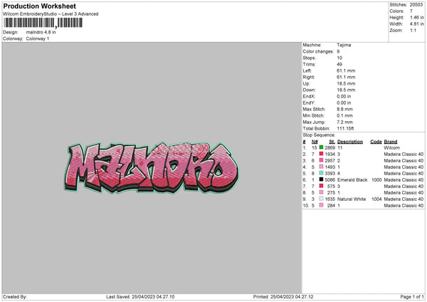 Malndro Embroidery File 6 sizes