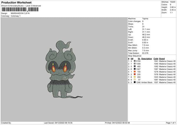 Marshadow Embroidery File 6 sizes