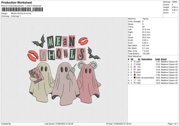 MEAN GHOULS Embroidery File 6 size