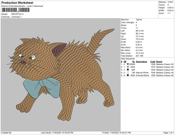 MEOW Embroidery File 4 size
