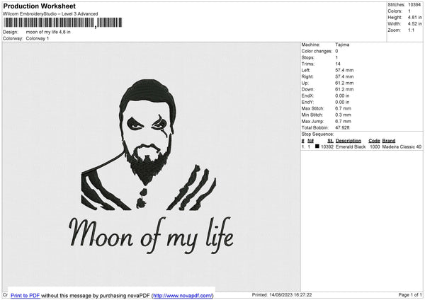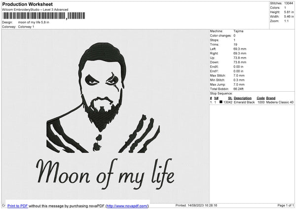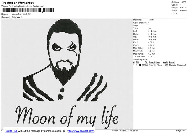 Moon Of My Life Embroidery File 6 size