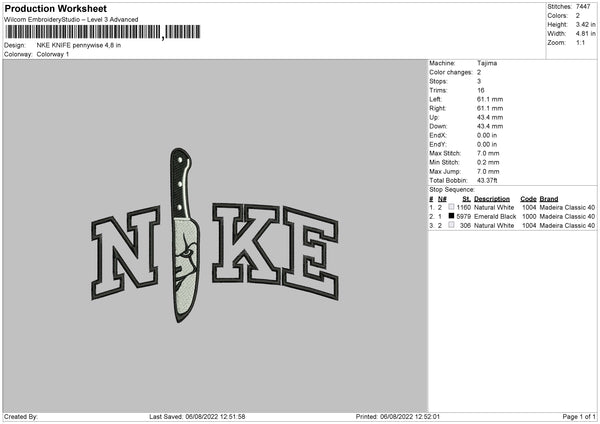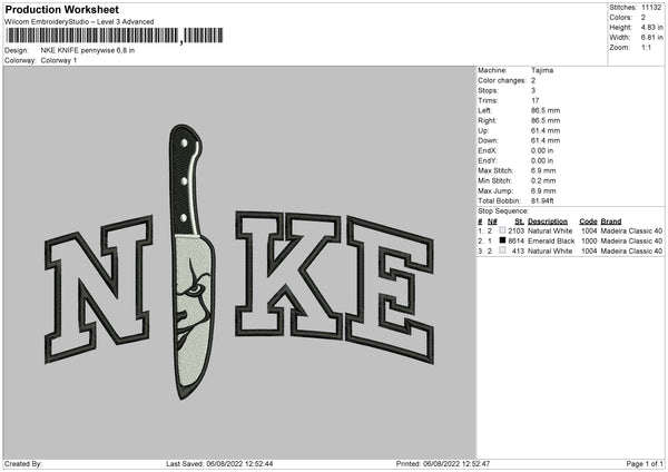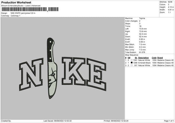 Nike Knife Pennywise Embroidery File 4 Sizes