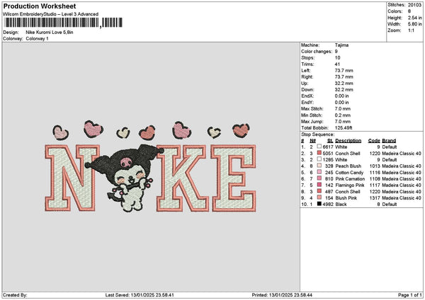 Nike Kuro Love 1301 Embroidery File 6 sizes