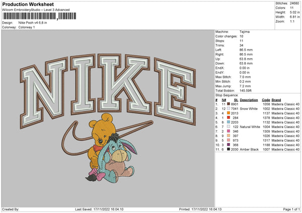 Nike Swoosh Pooh V4 Embroidery File 6 sizes
