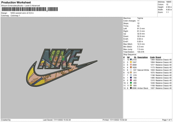 Nike Swoosh Zoro Embroidery File 6 sizes