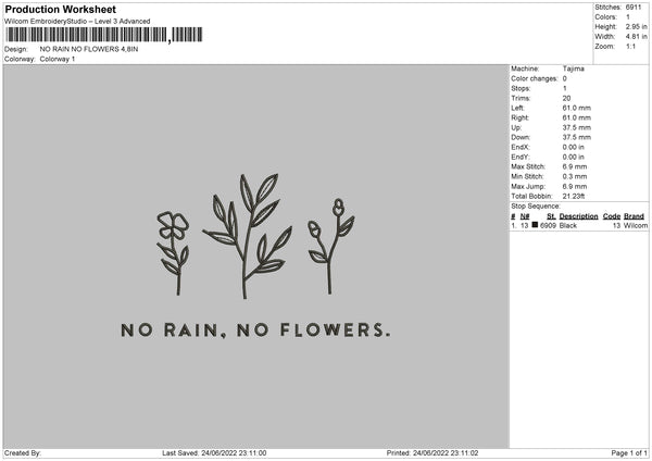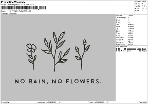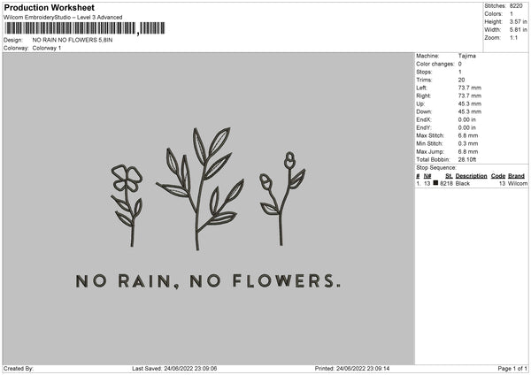 NO RAIN NO FLOWERS Embroidery File 4 size