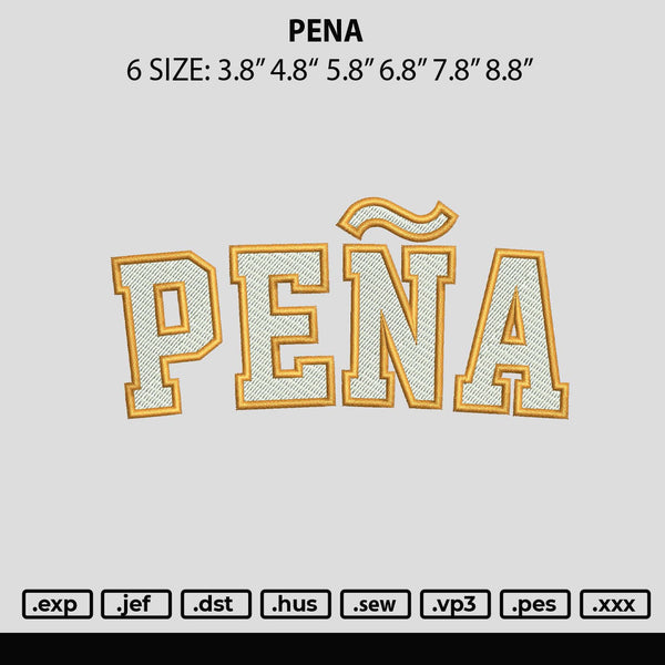 Pena Embroidery File 6 sizes