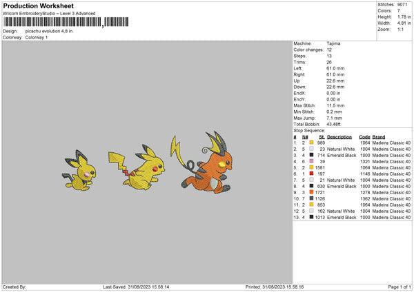 Pikachu Evolution Embroidery File 6 sizes